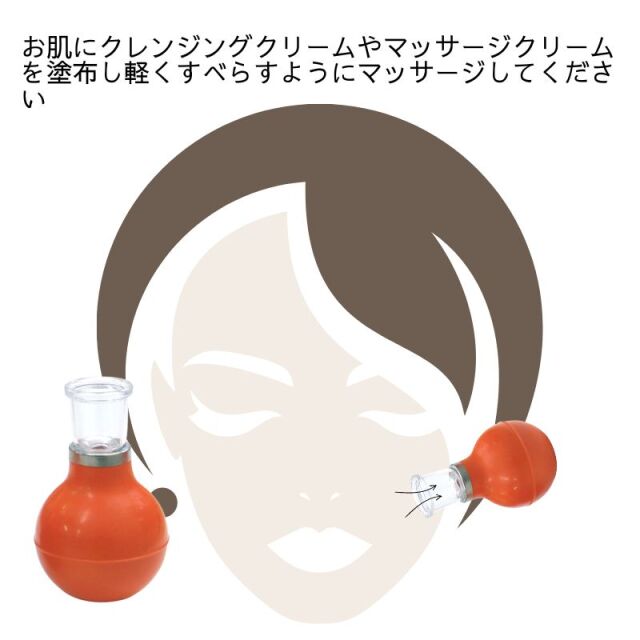 吸引マッサージで美顔吸引マッサージ効果で、お肌にしっとりすべすべ感を与えます。お肌にクレンジングクリーム、マッサージクリームを十分にすりこんでから、軽くすべらすようにマッサージしてして下さい。シェービングの後にも。吸引/エステティック/サロン/マッサージ/エステ/美容/美顔