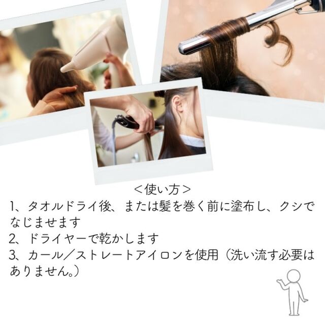 ヘアアイロンの前やお風呂上がりのドライヤーの前など普段使いがおすすめです。