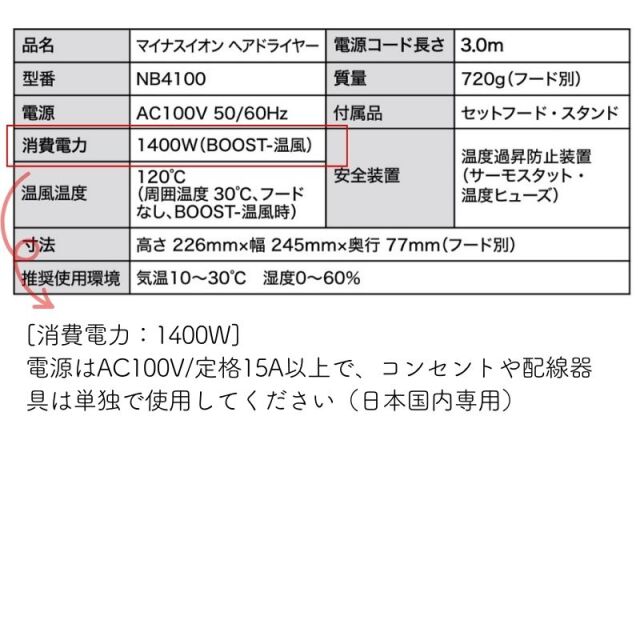 | 製品名: | ノビー マイナスイオン ヘアドライヤー 1400W NB4100 ブラック 黒 |