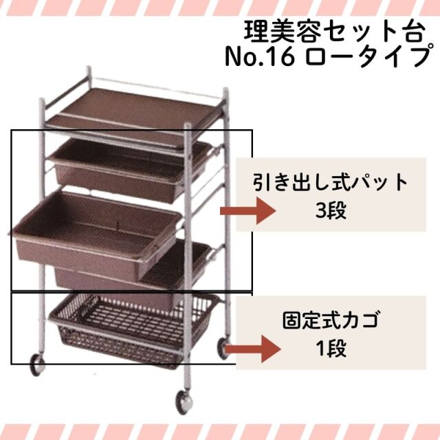 引き出し式パット3段、固定式カゴ1段となっております。