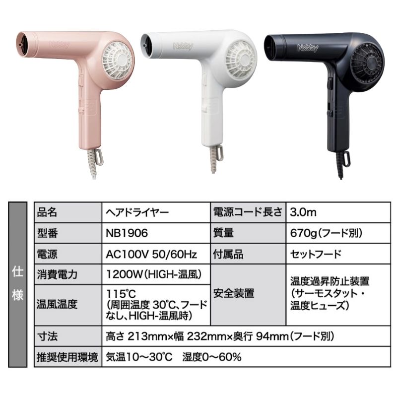 | 製品名: | Nobby ヘアードライヤー ピンク NB1906 1200W ノビー 数量限定・限定色 |