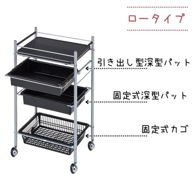 ■引き出し式深型パット1段、固定式深型パット1段、固定式カゴ1段付き