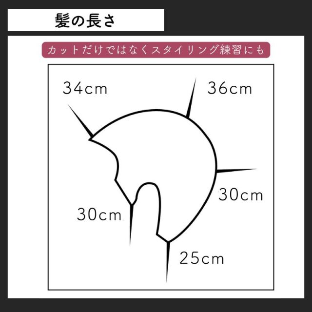 ●前髪:30cm、ゴールデンポイント:40cm、後頭部:35cm、ネープ:25cm、サイド:30cm
