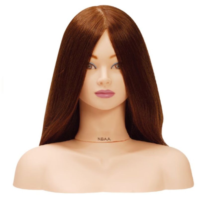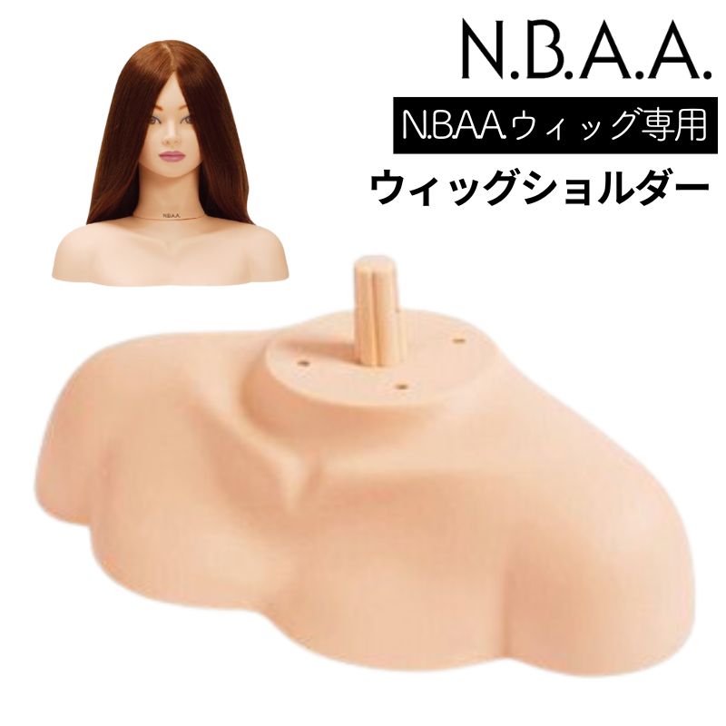肩がある状態で確認することで、より現実に近い状態をイメージできます。 セミロング以上のヘアースタイルは、毛先やカールが肩に乗って形成されています。 カッティングやスタイリングをすることで、今までの首までのウィッグでは習得できなかったカッティング位置や、ブラッシング位置など様々な状況の練習が可能となりました。 ウィッグショルダーを装着した練習では、実際に肩があることで、最も大事な顔とヘアーと肩までのフィニッシュスタイルのバランス感を習得することができます。 強い力を加える技術には、首が動かないように小さい布をはさんでご使用下さい。 <装着可能ウィッグ> N.B.A.Aウィッグ専用 2006年以前にご購入いただいた商品には入らないものがありますので、ご注意下さい。 ※N.B.A.A.ウィッグ専用ですが、お使いのマネキンによって肌の色は異なることがあります。 ●サイズ:約380mm~150mm(接続部55mm含む) ●差込部:円直径22mm