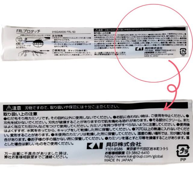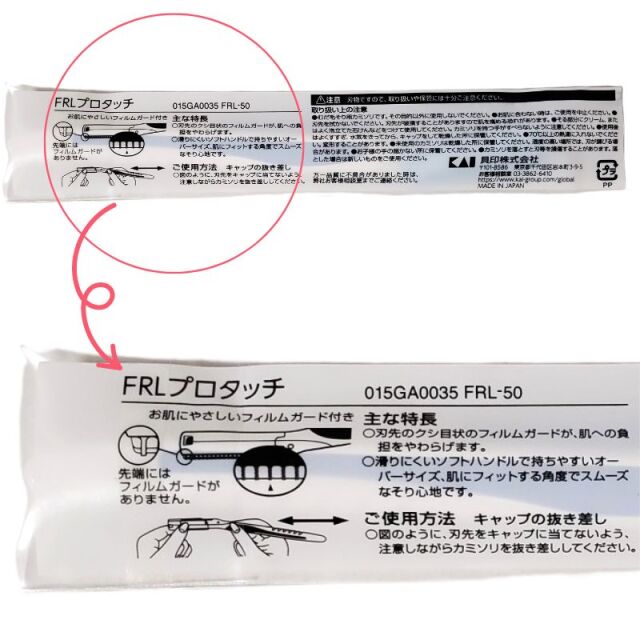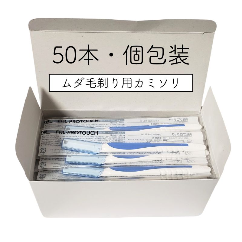 | 製品名: | 貝印 FRL プロタッチレザー ムダ毛剃り用カミソリ 個包装 50本入 |
