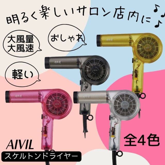 軽量でコストパフォーマンスに優れたスタンダードなサロンドライヤー。 風速、風量が大きくドライ時間を短縮できます。ブローやボリュームアップにも。 明るく楽しいサロン店内をテーマにスケルトン調のボディーを採用。 ◎約70℃/50℃の2段階温度切替 ◎ワンタッチクールショット ◎色:イエロー