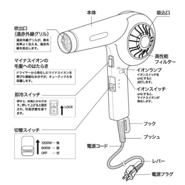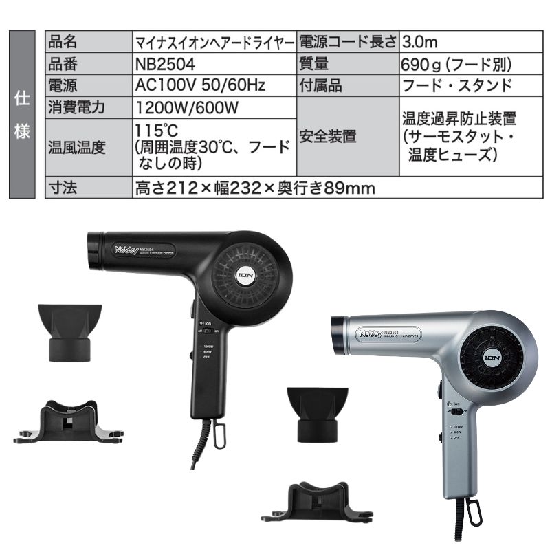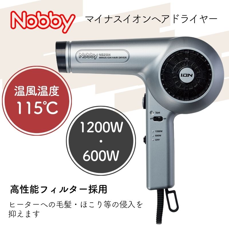 | 製品名: | ノビー ドライヤー Nobby NB2504 マイナスイオン ヘアドライヤー 1200W シルバー プロ用 |