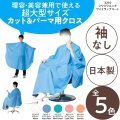 理容・美容兼用で使える大型サイズのカット&パーマクロス。ワイドに使えるスタイルが人気です。大型ソファーも楽々カバーします。シワ加工。帯電防止加工。防水加工。理髪店/理容室/美容師/クロス/美容院/セルフカット/散髪ケープ/コールド