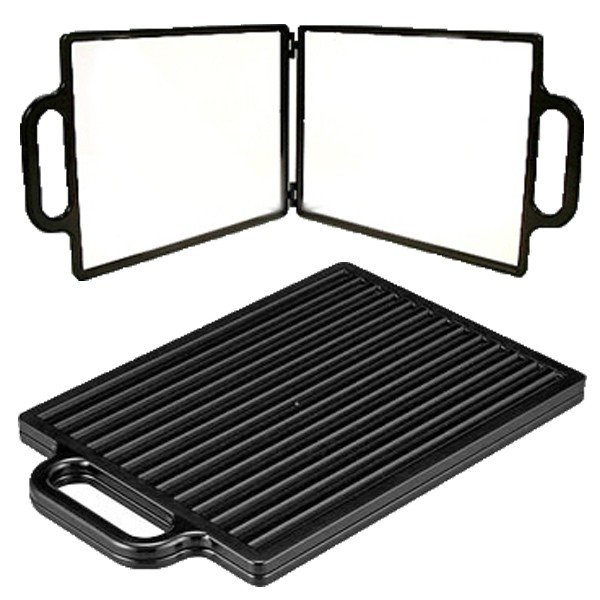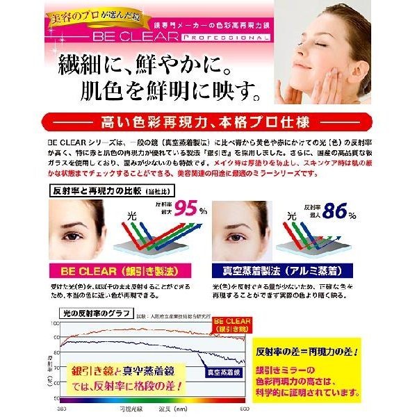 国産の高品質な板ガラスを使用し、歪みが少ないのが特徴。繊細に鮮やかに肌色を鮮明に映します。美容室、理容室の必需品。2面式鏡。鏡/ミラー/ヘアセット/髪型/美容師/理容師/サロン/美容院/セルフカット/美容院/理髪店/ヘアアレンジ/ヘアスタイル