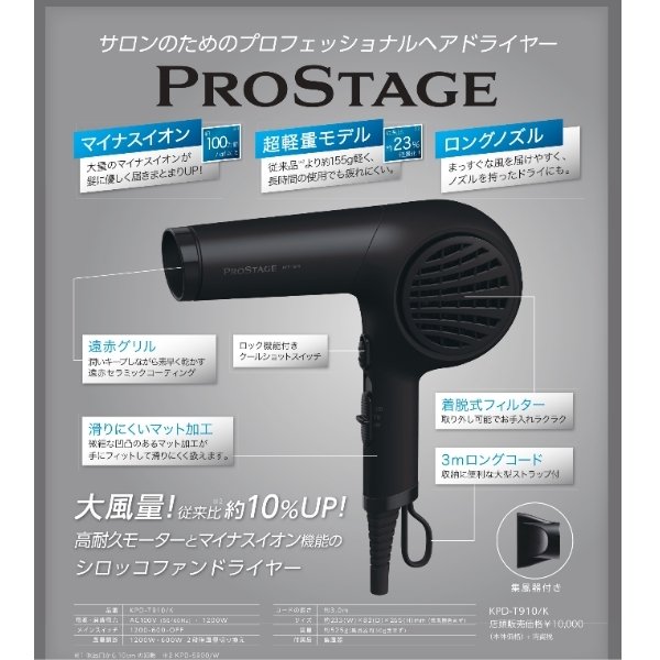 | 製品名: | コイズミ プロフェッショナル マイナスイオンドライヤー KPD-T910 ブラック 1200W |