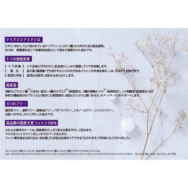有効成分ナイアシンアミドを配合し、高保湿の美容液シートマスクです。