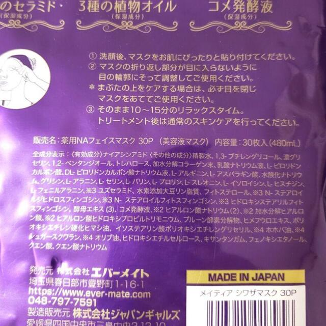 | 製品名: | メイティア シワザマスク 30枚 |