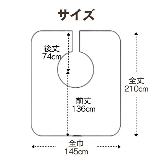 ●サイズ:長さ210cm×幅145cm×前丈136cm×後丈74cm