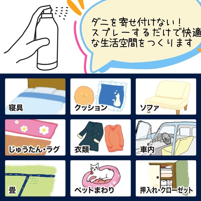 ダニを寄せ付けない!スプレーするだけで快適な生活空間をつくります。