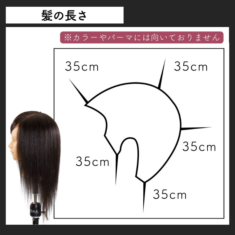 ●前髪:35cm、ゴールデンポイント:35cm、後頭部:35cm、ネープ:35cm、サイド:35cm