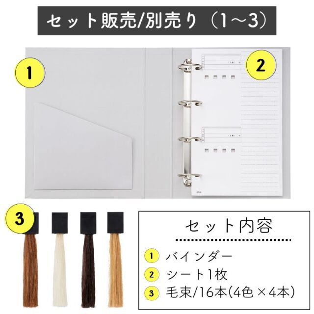 (バインダー、カラーリングレシピシート、毛束16本/各色4本)