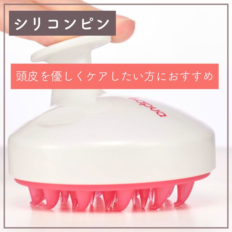 先端に丸みを帯びた柔らかいゴムピンがやさしく頭皮を刺激し、指先で落としきれない頭皮の皮脂をしっかり洗い流します。