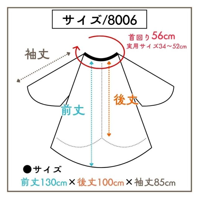 ●サイズ:前丈130cm、後丈100cm、袖丈85cm、首周り56cm