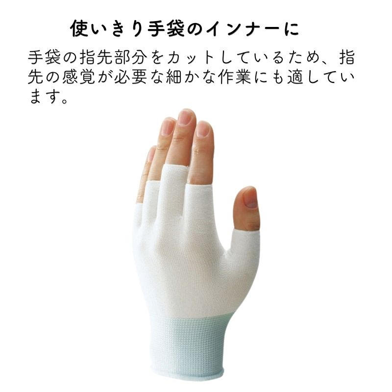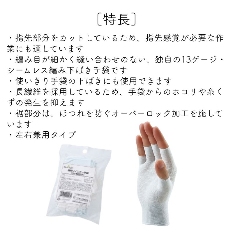 指切タイプナイロン製下ばき手袋、左右兼用タイプ
