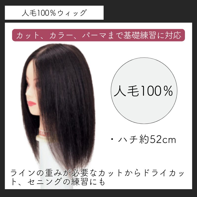 新人美容師さんからスタイリストさん、美容学校でのレッスンに。ワンレンの練習から、カラー・パーマまで、あらゆる基礎練習に対応できるスーパーウィッグです。人毛100%で満足のゆく毛量を植毛しています。カットウィッグ/カットマネキン/カットレッスン/人毛/黒髪/美容学校/練習/スタイリング/セットアップ/ヘアセット/美容師/理容師/サロン