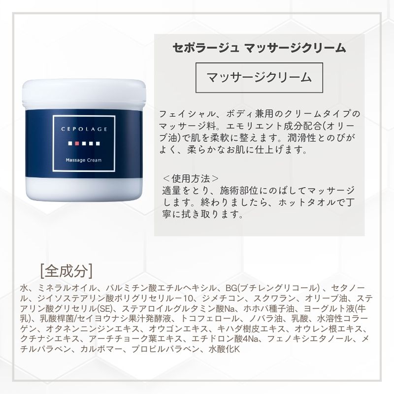 | 製品名: | セポラージュ マッサージ クリーム 400g |
